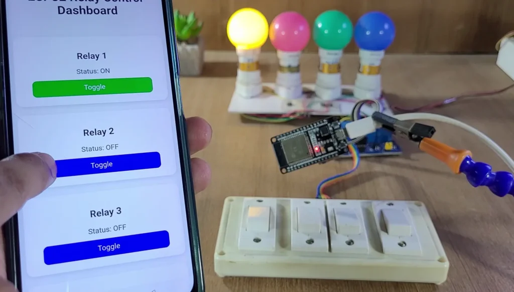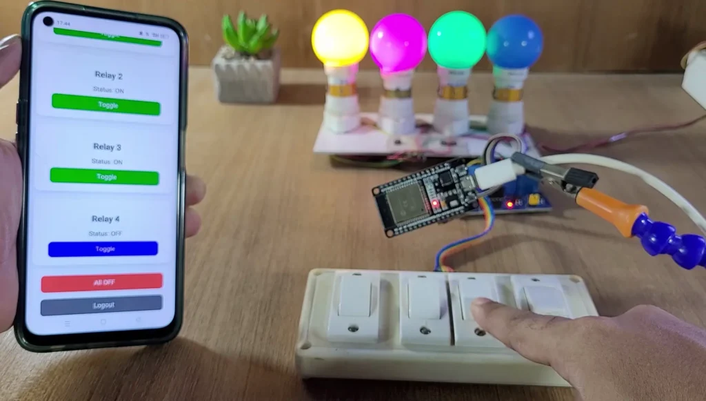 This process ensures that your ESP32 home automation setup is fully functional and can be controlled both physically and remotely via the Web Dashboard through the internet.