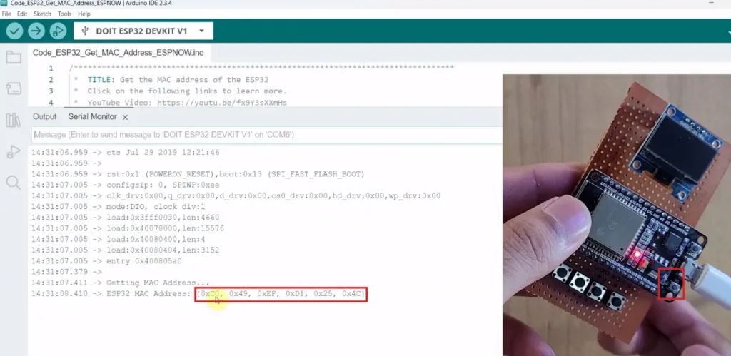 - The MAC address will be printed in the Serial Monitor